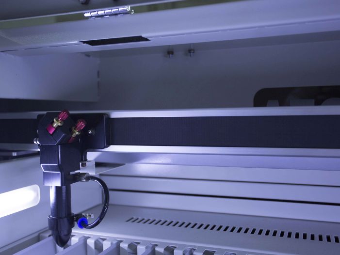 Wszystkie dostępne na rynku maszyny laserowe potrzebują wentylatora, systemu chłodzenia i sprężarki powietrza, aby działać wydajnie. Nowa seria została wyposażona w te elementy już na etapie produkcji, więc nie ma potrzeby modernizowania stanowiska pracy. Po prostu postaw ją na stole i zacznij pracować!