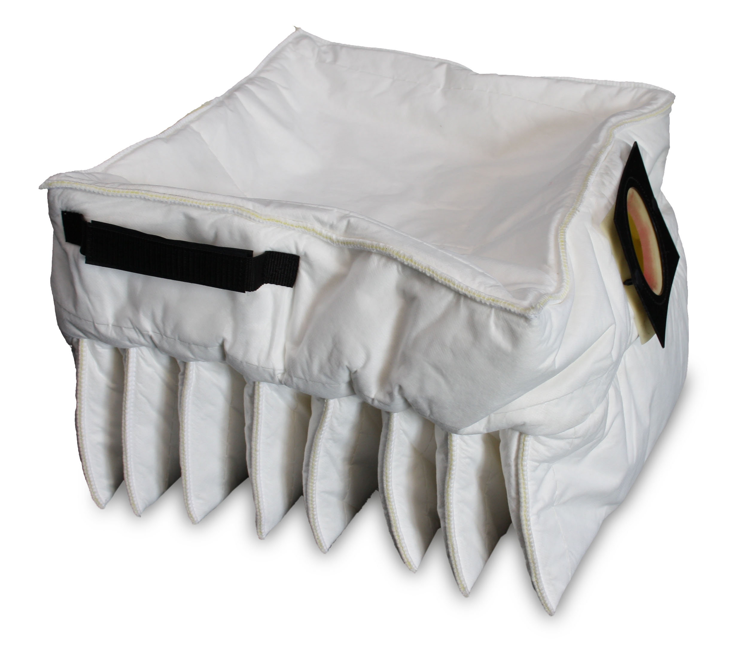 Filtr ten oferuje dużą powierzchnię filtracyjną z 8 kieszeniami worków filtracyjnych wykonanych z poliestru.