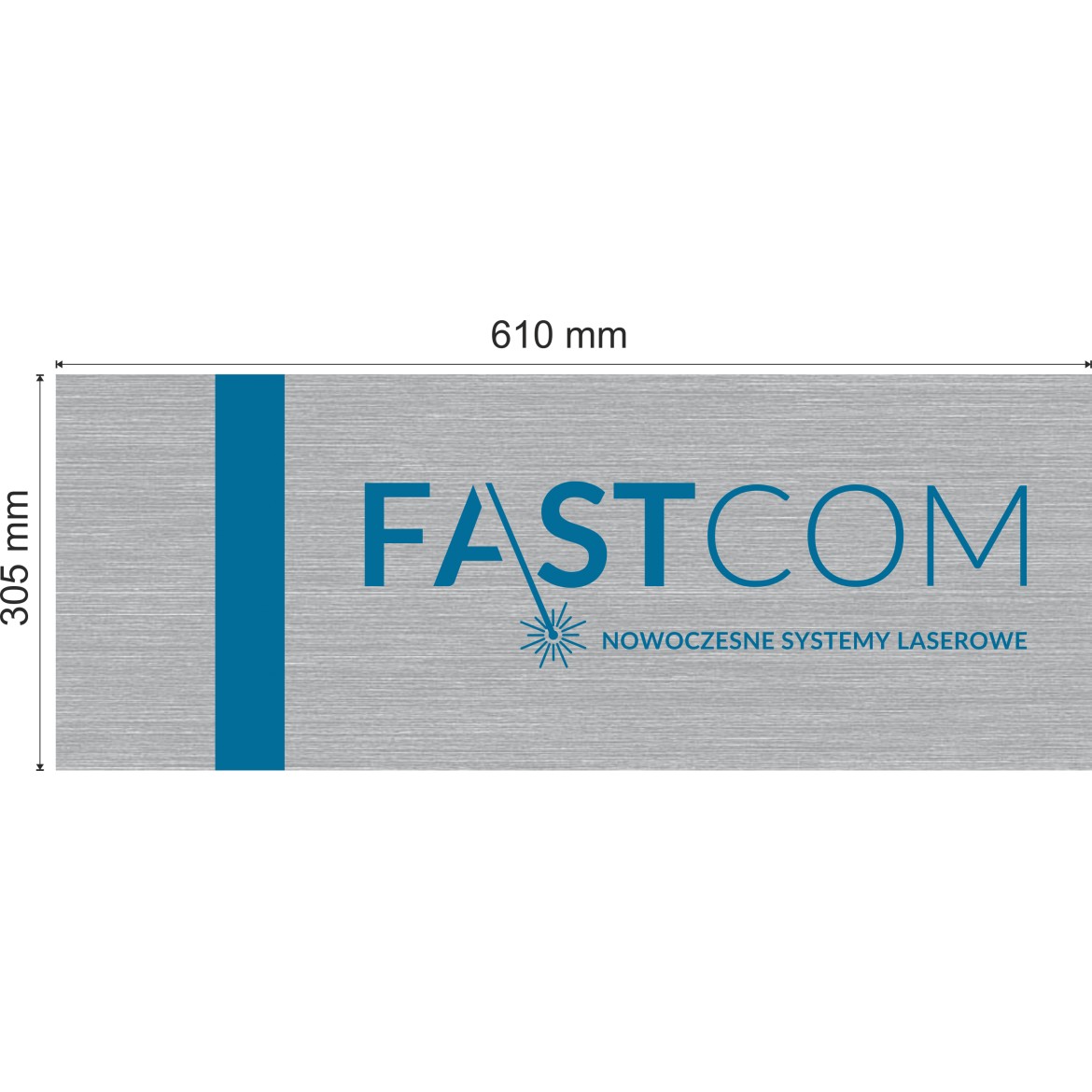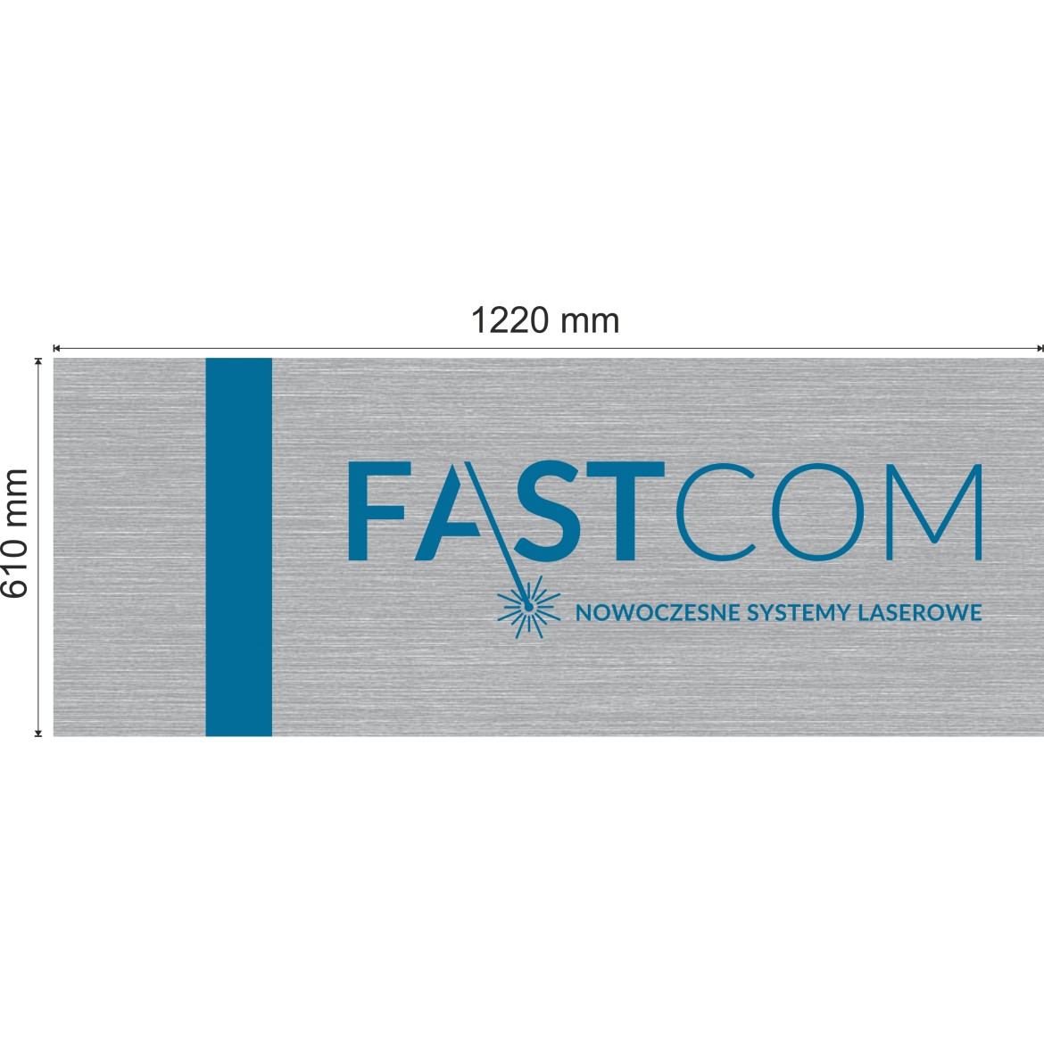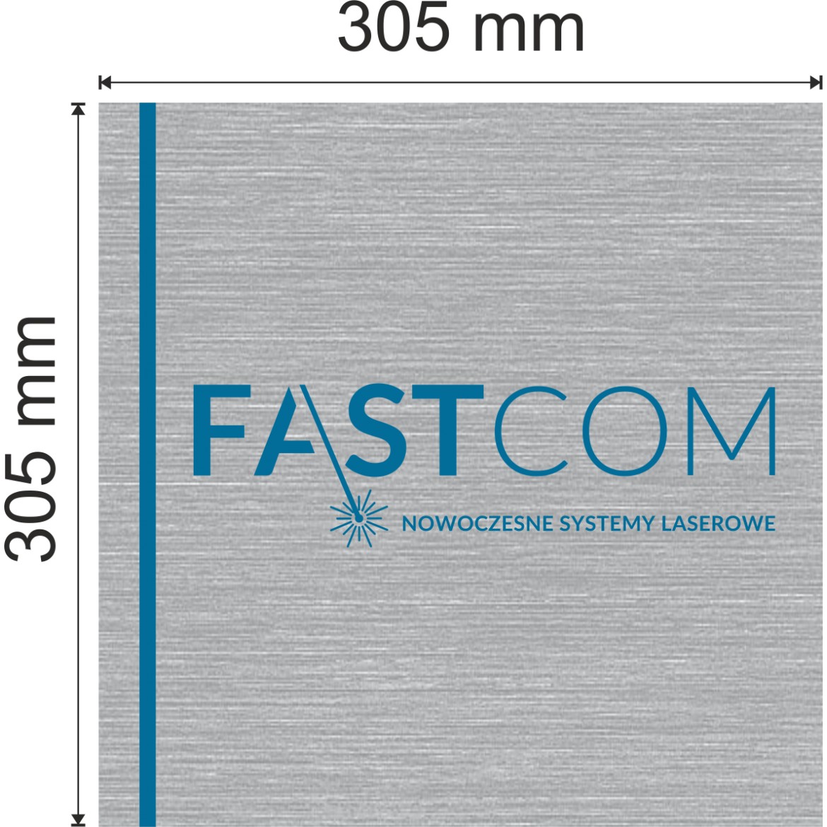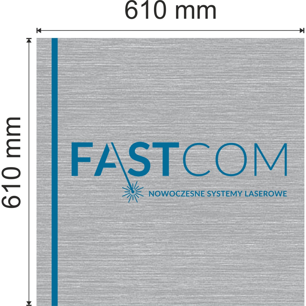 - Laminat dwuwarstwowy, jednostronny – błyszczące srebrne szczotkowane tło/niebieski grawer