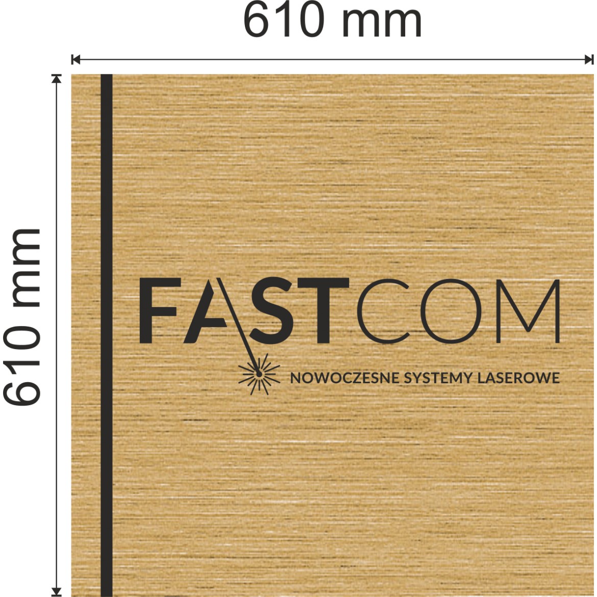 - Laminat dwuwarstwowy, jednostronny – matowe złote szczotkowane tło/czarny grawer