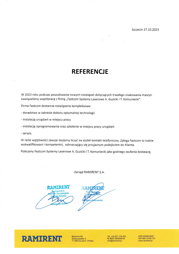 Sprzedaży nowych urządzeń, znakowarki przemysłowe używane, usługi serwisowe dla wszystkich dostępnych na rynku urządzeń laserowych i wynajem sprzętu.